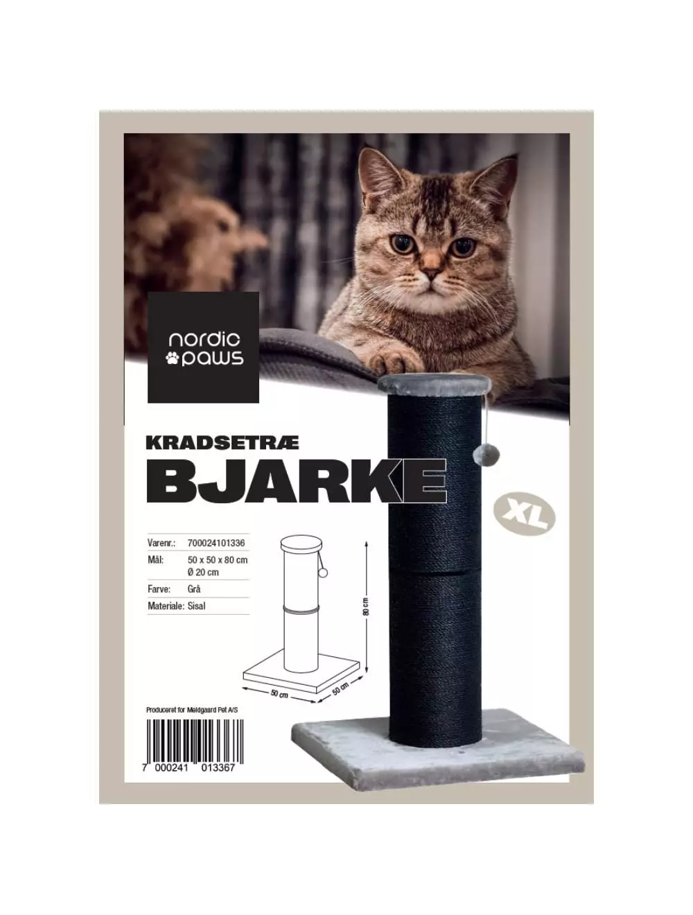 Nordic Paws Klorepåle XL Bjarke, grå